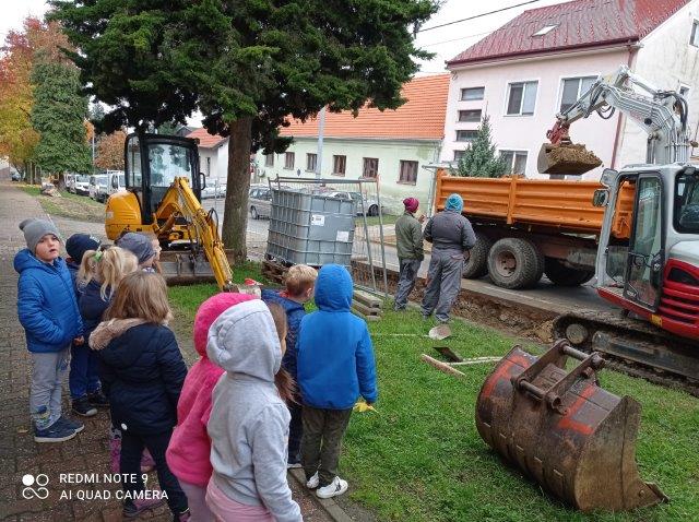 Djeca starije A skupine Nevena su pokazala interes za praćenje radova na sanaciji vodovoda kroz naš grad. Tijekom šetnji imali su više puta priliku promatrati radove radnih strojeva kako kopaju rupe, postavljaju cijevi i vrše tekuće radove.