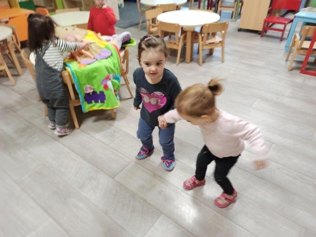 Glazba pozitivno utječe na djetetov fizički razvoj te razvoj umnih sposobnosti. U skupini često provodimo razne glazbene aktivnosti koje potiču razvoj slušne pažnje i percepcije kod djece. Kroz ples i pjevanje djeca pomalo upoznaju i usvajaju ritam i tempo. Uz slušnu percepciju, potiče se i razvoj govora, pamćenje, mišljenje, mašta. Glazba veseli djecu, zaokupi im misli kada su tužni i razvedri ih. Neke od pjesama koje pjevamo i pokretne igre s pjevanjem su : "Iš'o medo u dućan", "Kruška, jabuka, šljiva", "Pada kiša", "Bim, bam, bučicu", "Vel'ki bratec Ivo", "Eci peci pec", "Kad si sretan", "Ringe raja", "Hoki poki" i razne druge pjesme, primjerene dobi djece.