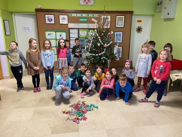 Djeca starije A i C skupine okitili su božićnu jelku u predvorju objekta Maslačak. U suradnji s gospođom Katarinom Žagar koja nam je darovala bor ukrasili smo naš vrtić. Bor su djeca okitila ukrasima od gipsa i bombončićima koje su izradili na radionici u Muzeju Moslavine i u vrtiću.