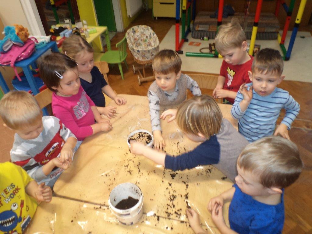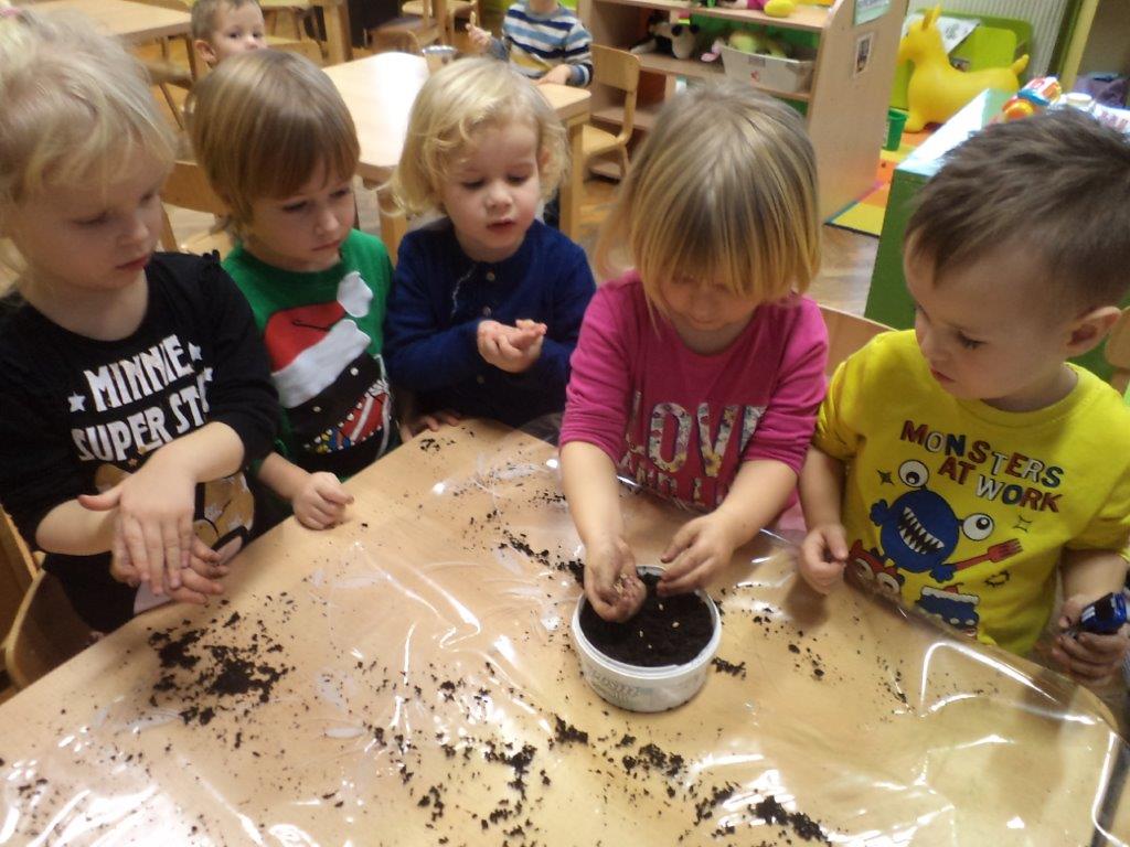 Djeca mlađe A skupine Nevena obilježavaju igre i aktivnosti adventskog ciklusa. Svoj veliki interes i želju za sudjelovanjem u zajedničkom radu pokazali su i tijekom sijanja pšenice povodom Sv. Lucije. Djecu je oduševila mogućnost opipavanja i usitnjavanja zemlje svojim ručicama, a isto tako i punjenje zemlje u posudice. Govorili su da u zemlji raste trava i cvijeće, da zemlje ima u vrtu te da u zemlji žive krtice i gliste. Sitno zrnje pšenice pažljivo su posijali u posudicu sa zemljom  i odložili u naš adventski kutić pokraj bora.