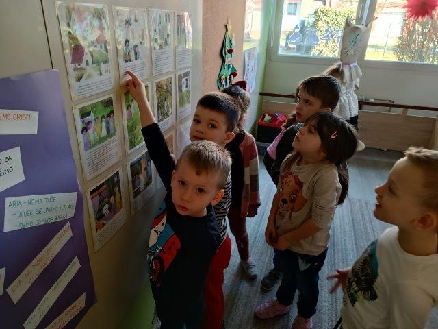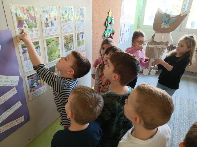 Cilj naše priče po slikama bio je potaknuti djecu na razgovor, pričanje, slušanje… Kao dodatni poticaj, izradili smo lutku Mace Papučarice od PNM-a s kojom djeca rado scenski improviziraju.