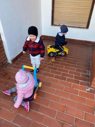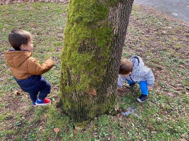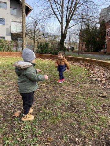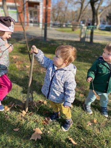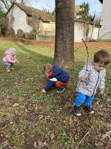 Djeca prvih jaslica svakodnevno borave na zraku. Najčešće odlazimo na terasu, ali odlazak u šetnju kod djece izaziva poseban osjećaj sreće i uzbuđenja. Za vrijeme šetnje djeca osluškuju razne zvukove iz prirode, uočavaju životinje koje tada imenujemo (pas, mačka), promatramo okruženje našeg vrtića te taktilno istražujemo prirodu (trava, mahovina, kora drveta). U garderobi potičemo djecu na samostalno izuvanje i obuvanje papuča.