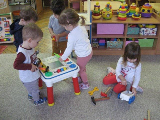 Bogata ponuda materijala potiče djecu na dugotrajnu igru, a u kutiću majstora rado se igraju i djevojčice i dječaci.