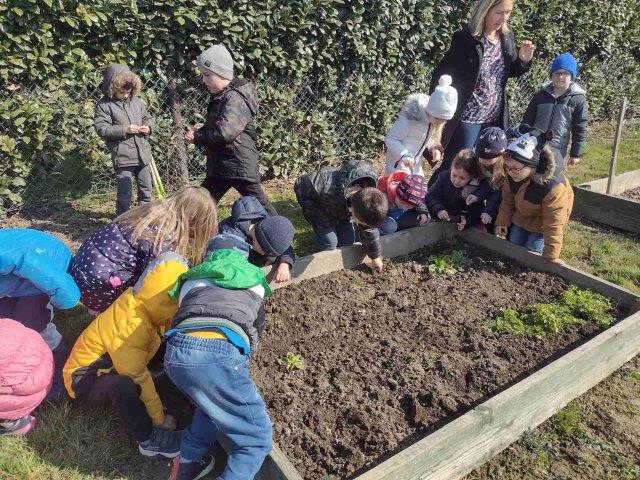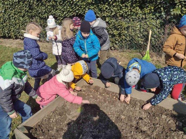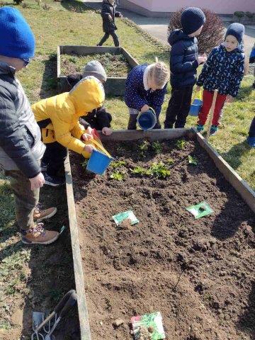 Potaknuti radovima odraslih djeca su prepričavala što su sve radila kod kuće u dvorištu i u vrtu. Ispred vrtića neven, a u suradnji s djecom zasadili smo vrt. Djeca su pokazala veliki interesa sijanje i sadnju različitih vrsta poput luka, salate, blitve i špinata. Zajednički smo se dogovorili kako ćemo označiti gdje smo što posadili izradivši kartice s fotografijama koje smo postavili u z predviđene gredice. nakon što smo sjemenke stavili u zemlju zalili smo svoj vrt. Za vrijeme obrade tla uočili smo gliste i puževe kućice koje je puž napustio. Svakodnevno za vrijeme boravka vani obilazimo naš mali vrt!