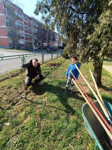 U sklopu projekta "Šuma zajednica biljnih i životinjskih vrsta" djeca i odgojiteljice starije C skupine Maslačka posadili su bor u dvorištu vrtića.