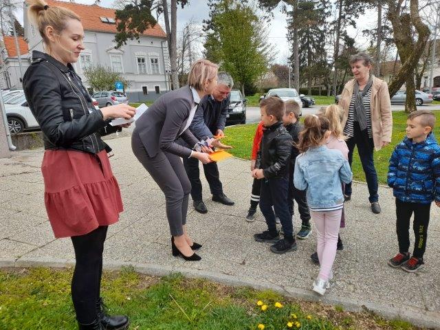 Ispred zgrade Gradske uprave, djeca starije B skupine Nevena uručila su uskrsne čestitke  zamjenici gradonačelnika Grada Kutine Ivani Grdić i pročelniku Željku Tomičić. Među dekoracijama ispred zgrade djecu su dočekali slatki paketi koji su izmamili osmjehe na dječjim licima.