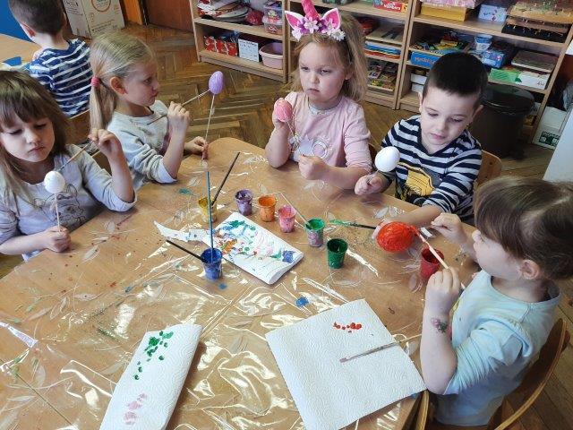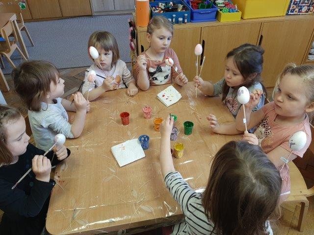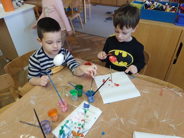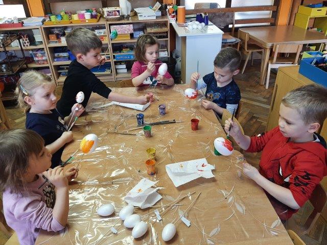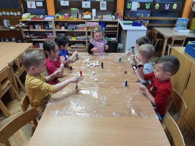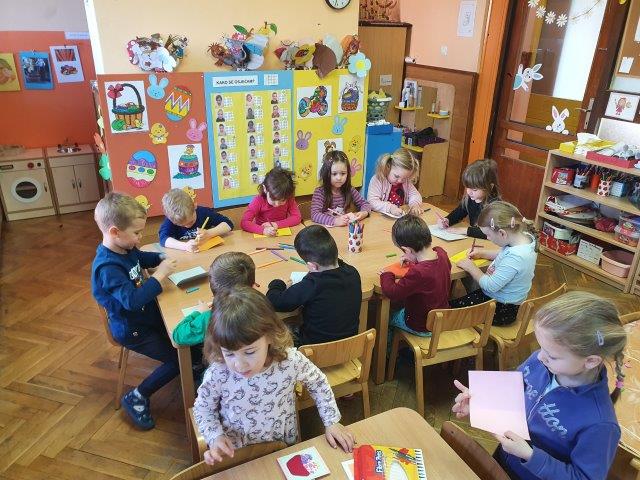 Bliži se Uskrs. Za djecu smo pripremile razne materijale i svakodnevno organizirale male kreativne radionice. U suradnji s roditeljima smo prikupili jaja od stiropora. Djeca su pisanice ukrašavala temperom, lakovima za nokte, šljokicama i perlicama. Uskrsne čestitke izrađivali su ukrašavajući ih flomasterima. Crtali su uglavnom uskrsne i proljetne motive. Dio djece je od plastelina izrađivao pisanice , košare, zečiće,…