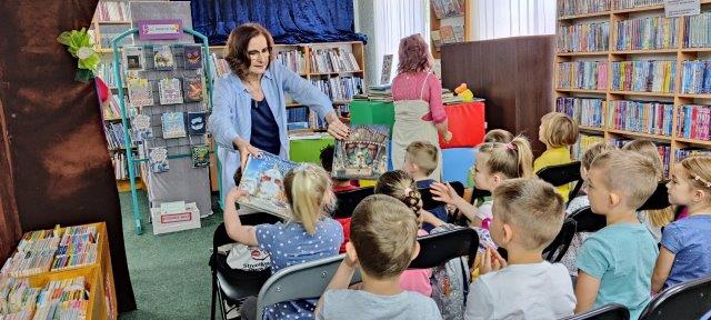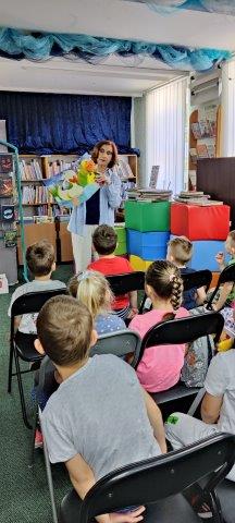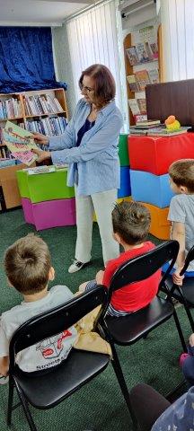 Roditelji su djecu doveli pred Knjižnicu i čitaonicu, gdje smo se prebrojili i pozdravili s njima. U knjižnici nas je dočekala knjižničarka Katarina koja je vješto animirala čak i one najmlađe. Zadržala je pažnju i interes djece punih sat vremena, pročitala priču o zmaju, podijelila djeci prekrasne,velike slikovnice za razgledavanje i darovala bojanke zmaja za svu djecu. Mi smo njoj, u znak zahvalnosti, poklonili crteže naše Knjižnice i čitaonice u igraonici.