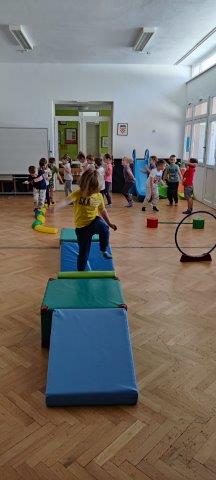 U vrtić "Neven" prošetali smo uz pratnju voditeljice Dijane koja nas je pomogla smjestiti u jednu sobu da se osvježimo, obavimo higijenu i užinamo. Nakon užine u dvorani nas je već čekala glavna sestra Adrijana sa vagom i stalkom za mjerenje visine. Odradili smo uredno i brzo taj dio "posla" i posvetili se igri u dvorani. Uspjeli smo odigrati igru s loptom u krugu, veliki padobran i poligon sastavljen od različitih rekvizita. Ostalo nam je još toliko vremena da napravimo jedan krug oko vrtića, malo se poigramo na malom igralištu i odmorimo na klupici iza vrtića.