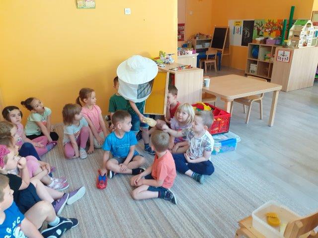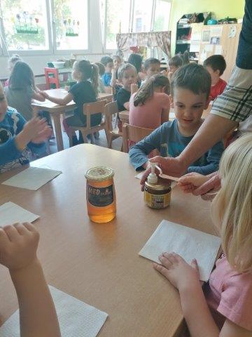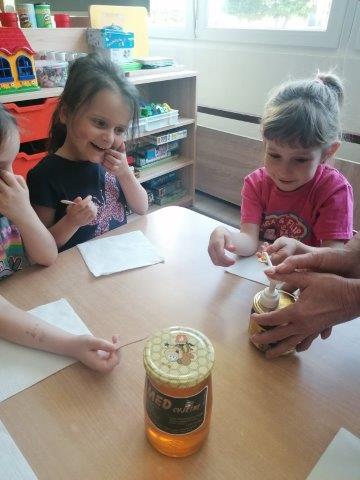 Djeca srednje C skupine Maslačak su prošli tjedan kao prave pčelice radilice sudjelovale u nizu aktivnosti na temu pčele kako bi od rane dobi proširivali znanje i svijest o važnosti pčela za naš eko sustav. Kroz jezične igre, tjelesne aktivnosti, čitanje slikovnice „Pčelica Jelica i medo Edo“, upoznavanje i usvajanje recitacije „Bumbari i pčele“, likovno izražavanje uz ponudu različitih materijala, sredstava i tehnika te pčelarskim rekvizitima i delicijama koje smo dobili u suradnji s roditeljima, uspjeli smo djeci dočarati važnost pčela u prirodi, a usput smo se i počastili medom.