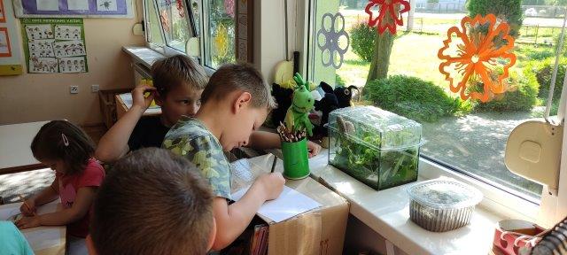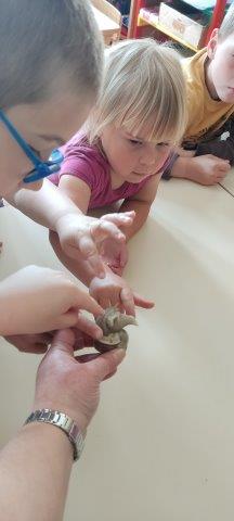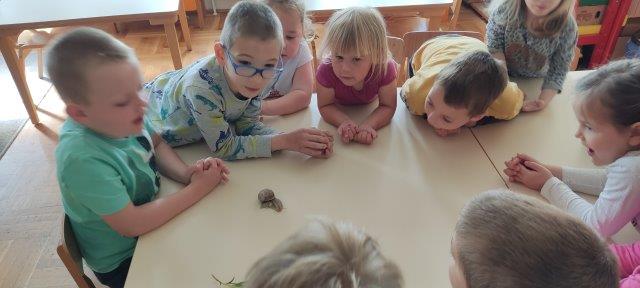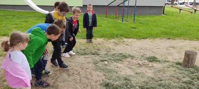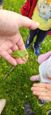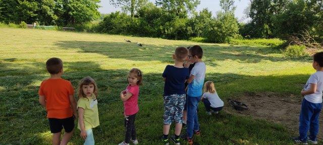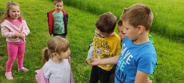Djeca iz objekta Leptirić iz Međurića tijekom boravka na zraku te uz doprinos kišnog vremena pronašla su puža i žabu gatalinku. Iz neposredne blizine djeca su promatrala kako izgledaju, kako se kreću te raspravljali o njima. Oponašali su kretanje žabe i s njom skakutala. Kako je žaba gatalinka zaštićena vrsta u Republici Hrvatskoj pustili smo je da „odskakuće“ u svoje stanište -travu. Puža smo unijeli u skupinu gdje su ga djeca promatrala i opipavala. Jako zanimljivo im je bilo gledati kako puže i ostavlja trag za sobom, kao i to da se uvlači u svoju kućicu kada mu prijeti opasnost. Otpjevali su mu pjesmicu „Puž muž“ gdje je on pustio svoje roge van i to je za djecu bilo jako interesantno i stalno su mu pjevali. Uslijedile su razne aktivnosti o glavonošcima i vodozemcima – crtanje, modeliranje plastelinom, listanje enciklopedija kako bi sto više saznali o njima. Prilikom puštanja puža u njegovo stanište uočili smo rodu koja je šetala livadom u neposrednoj blizini i promatrali je kako svojim kljunom traži hranu. Razgovarali smo o rodama čime se hrane i o njihovom staništu. Djeca i dalje sa zanimanjem svaki dan promatraju hoće li im se pridružiti koja žabica ili puž ili neka nova životinjica koja živi u travi.