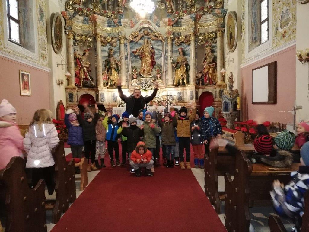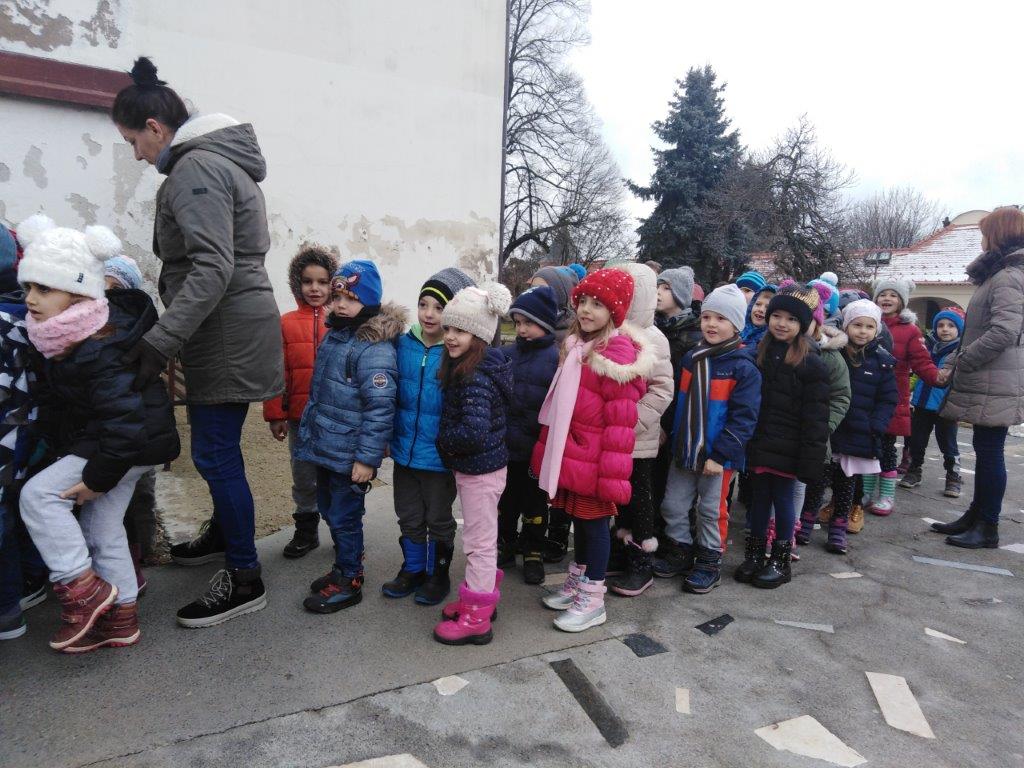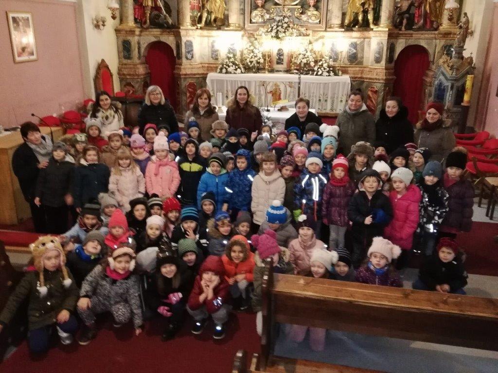 Djeca starijih skupina Nevena i Maslačka posjetila su kutinsku katoličku crkvu Sv. Marije Snježne. Djecu je pred crkvom dočekao vikar župe Artur Makara, koji je djecu uveo u crkvu i vodio s njima razgovor. Za djecu je pripremio sličice s likovima ljudi i životinja koje je podijelio djeci te su oni glumili žive jaslice. Potaknuo ih je na molitve Oče naš, Zdravo Marijo i Anđele čuvaru.
