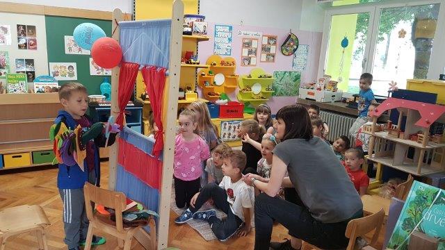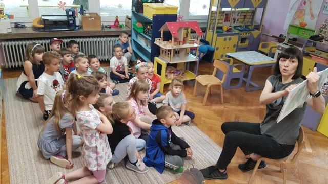 Stariju A skupinu Maslačak posjetila je Evina majka, Danijela Certić Gršeta. Donijela je enciklopedije i časopise o kukcima, kao i prave kukce u smoli koji su posebno zainteresirali djecu. Djeca su ih promatrala pod povećalom, opisivala, uočavala sličnosti i razlike i imenovala. Majka je pročitala slikovnicu „Vrlo gladna gusjenica“, nakon koje je, lutkom gusjenice i drugim rekvizitima, izvela predstavu. Nakon predstave, djeca su vrlo rado proigravala priču lutkama te se likovno izrazila na temu.