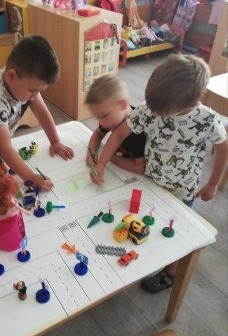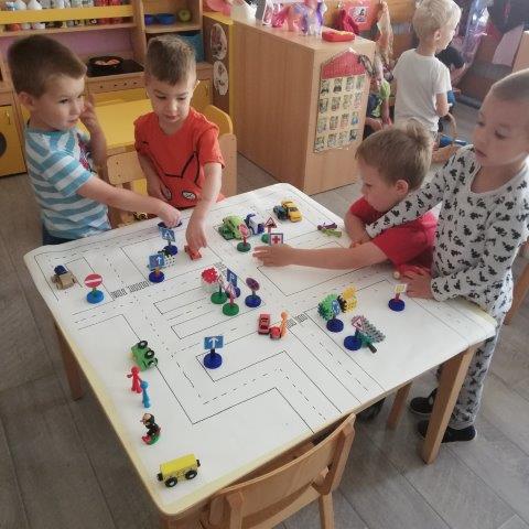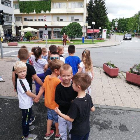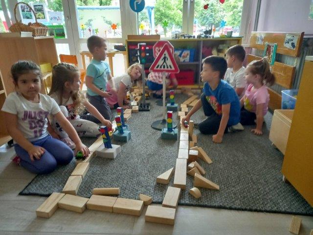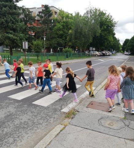 Slikovnica „Budimo sigurni na cesti“ Mladena Kušeca poslužila nam je da započnemo aktivnosti vezane uz promet. Razgovarali smo o pravilima ponašanja u prometu i zašto su ona važna. Za vrijeme boravka na zraku s djecom smo posjetili obližnja raskrižja gdje im je najveću pažnju privukao semafor. U skupini su imali priliku izraditi svoj semafor od pedagoški neoblikovanog materijala. Od drvenih konstruktora gradili su ceste uz koje su postavljali prometne znakove i semafor. Velik interes pokazali su i za stolnu igru prometa koju su izradili uz pomoć odgojiteljica. U igri su dodavali prijevozna sredstva, pješake, prometne znakove te dodavali građevine poput bolnice i policije.