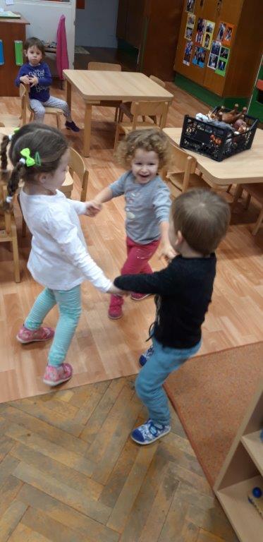 Čim zasviraju svuci s CD-a djeca se primaju u parove ili krug i izvode svoje plesne pokrete. Najveselije je kada odgojiteljica svira na harmoniku ili gitaru, a djeca muziciraju zvečkama, udaraljkama, plješću, pjevaju i plešu.