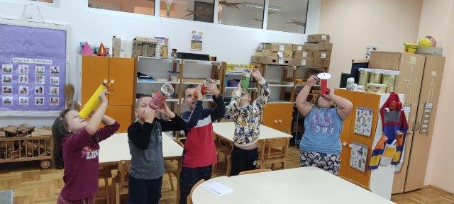 Djeca mješovite skupine Leptirić iz Međurića odlučila su napraviti svoje igračke od pedagoški neoblikovanog materijala papirnih i plastičnih tuljaca, alufolije, slamčica, papira u boji. Napravili su istraživačku igračku kaleidoskop. Djevojčice su crtale sa flomasterima na papirnom krugu, dok su dječaci lijepili šarene listiće na plastične poklopce. Bili su jako sretni što su izradili zanimljivu igračku koju sada stalno koriste i istražuju što će vidjeti kroz otvor tuljca.