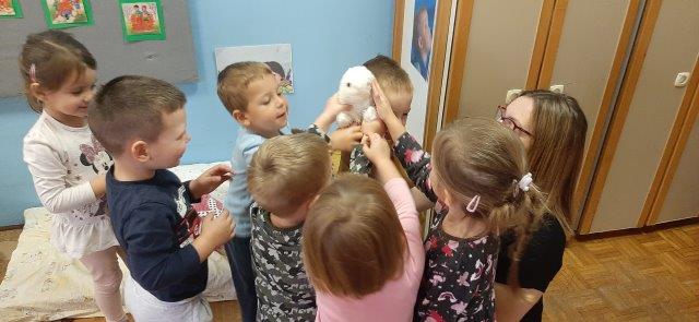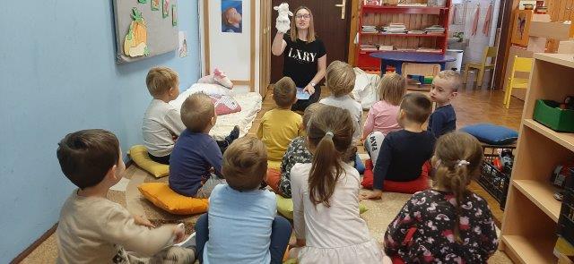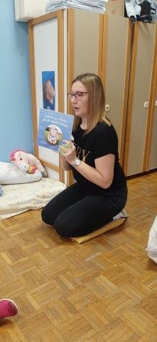 U goste nam je došla mama Borne Banovića, Monika. Proveli smo ugodne i razigrane trenutke u njezinom društvu. Slušali priču „Ovčicu je strah jer će dobiti brata“ koju nam je čitala uz pomoć ginjol lutkice ovčice, a nakon priča slijedile su igre po našim kutićima. Vrijeme nam je brzo prošlo, a mama Monika obećala je da će opet doći s nekim novim pričama i igrama. Veselimo se ponovnom druženju!