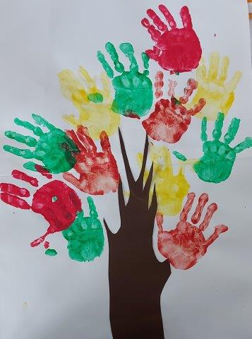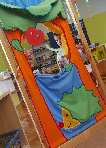 Kroz slikovnicu „Jabuka“ D.Bruna i mali igrokaz o jabuci i crvu djeca su uočila koliko je lijepo i važno imati prijatelje. Zajedno smo izradili drvo u jesen koje je ujedno i simbol prijateljstva djece u skupini. Svakodnevnim likovnim aktivnostima uočili smo mnoštvo boja kojima nas je obojala jesen, a koliko joj se veselimo pokazali smo kroz pjesme i brojalice kao što su „ Kruška, jabuka šljiva“, „ Mali bratec Ivo“, „ Boc, boc iglicama“…