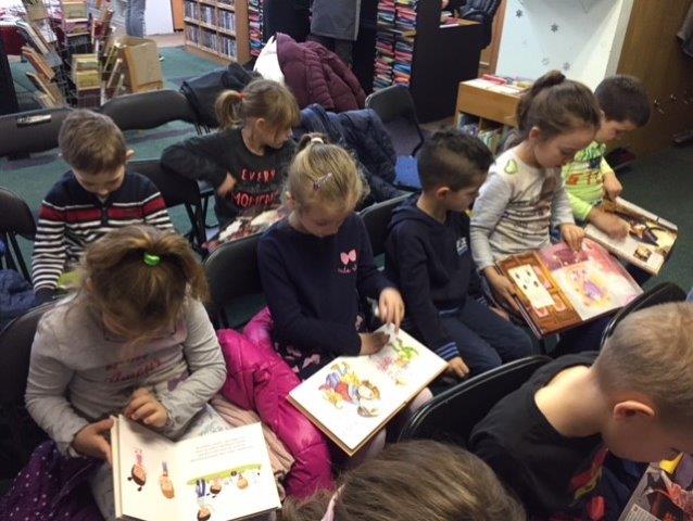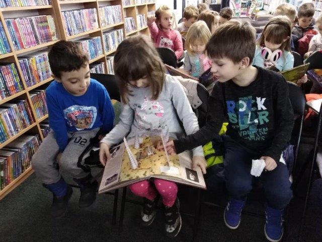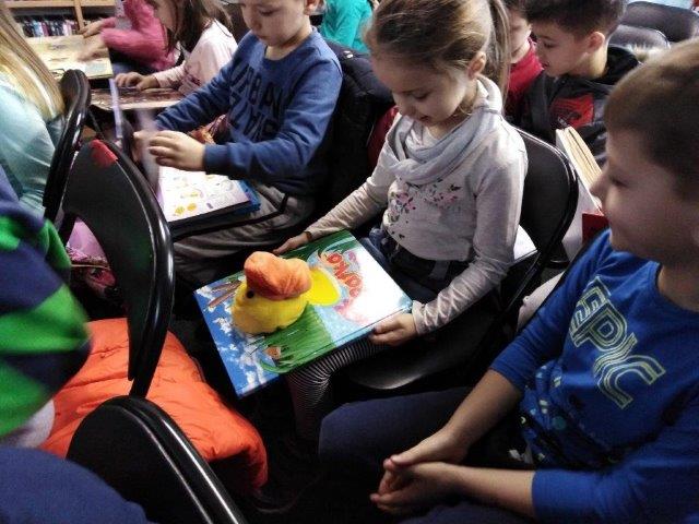 POSJET GRADSKOJ KNJIŽNICI I ČITAONICI 13.2.2019. Djeca starijih skupina posjetila su Gradsku knjižnicu gdje ih je knjižničarka na zanimljiv način upoznala sa svojim zanimanjem te pravilima kojih se treba pridržavati tijekom boravka u knjižnici te kako se odnositi prema posuđenim knjigama. Djeca su imala mogućnost i listati knjige, a u razgovoru su aktivno sudjelovali postavljanjem pitanja i izražavanjem svojih ideja i mišljenja.