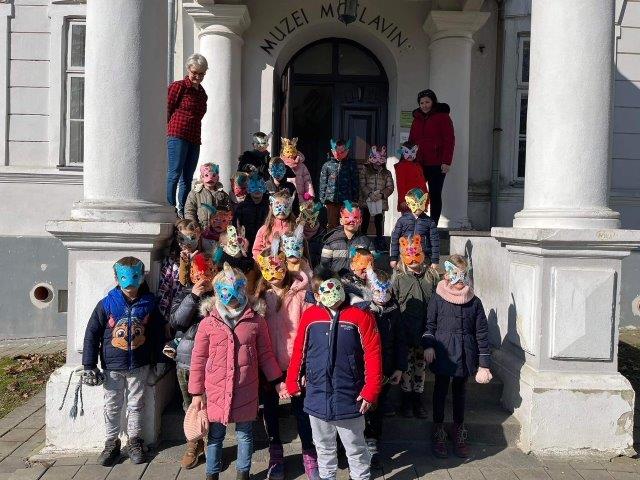 Djeca starije D skupine posjetila su Muzej Moslavine gdje su sudjelovali na radionici povodom maškara. Kustosica Silvija Kantolić pripremila je materijal i sredstva s kojima su djeca ukrasila maske. Zajedničkom slikom obilježili smo naš posjet Muzeju.
