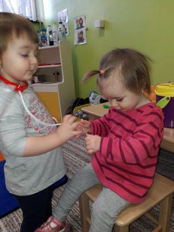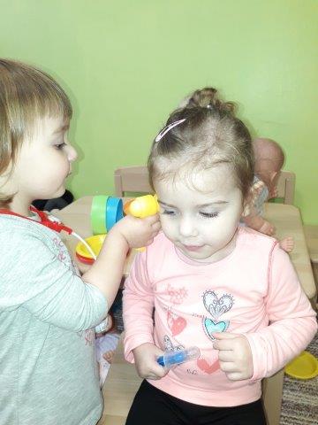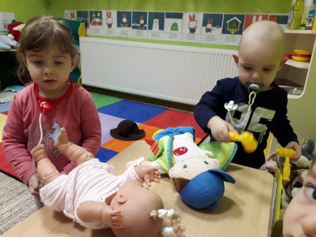 Liječili su lutke, slušali ih kako dišu, mjerili im temperaturu, kapali nos, stavljali zavoje... Pojedina djeca su nakon nekog vremena  međusobno surađivala te im je bilo zanimljivo u igri sudjelovati u ulozi pacijenta.