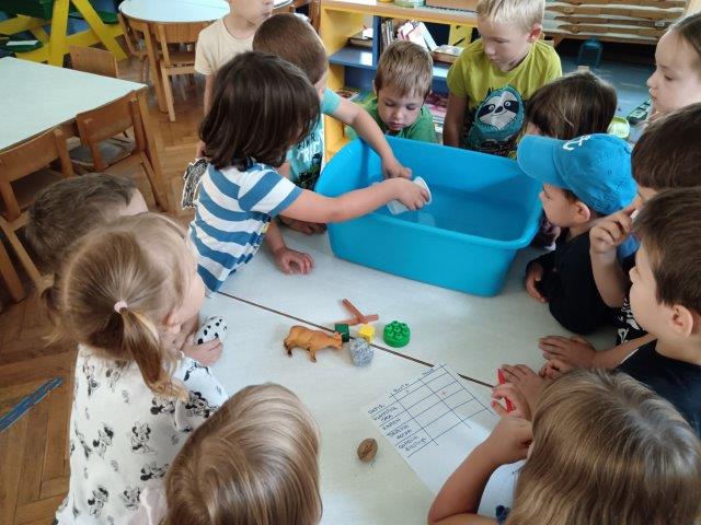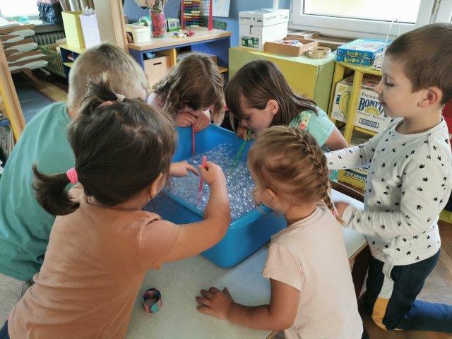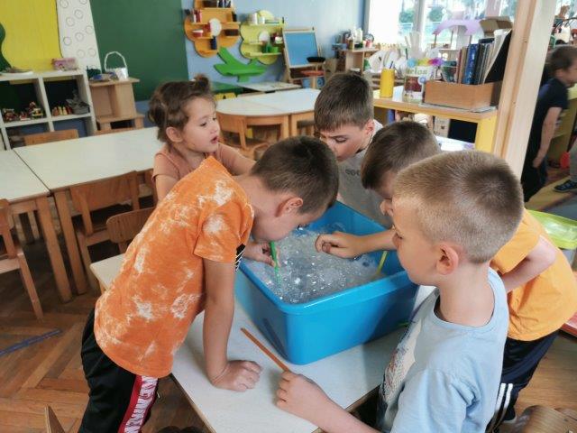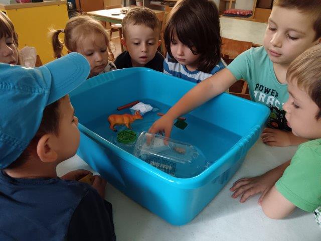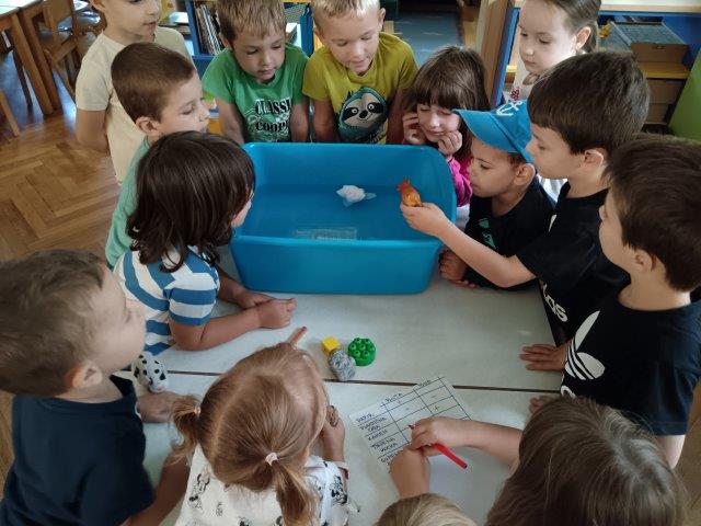 Igre s vodom kod djece izazivaju oduševljenje te ih potiču na istraživanje, služe za usvajanje novih spoznaja o vodi te zadovoljavaju dječju radoznalost. Pogledajte koje smo aktivnosti proteklih dana provodili u našoj skupini (stvaranje mjehurića od sapunice, istraživanje predmeta koji plutaju ili tonu, potapanje brodića...).