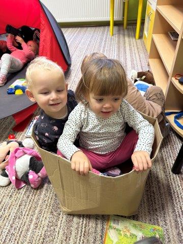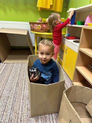 Djeca II. jaslica Potočnice rado provode vrijeme u igri kartonskim kutijama koje su nam u skupinu donijeli roditelji. U kutije djeca ulaze, izlaze, stavljaju unutra igračke, sakrivaju se u kutije, a neke kutije služe kao vlakovi, auti, kuće i sve ono što djeca požele.