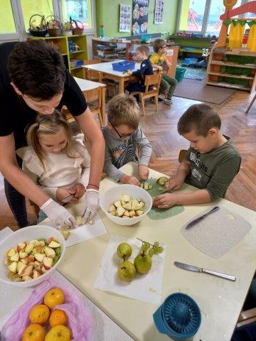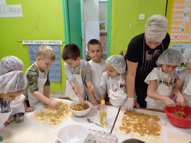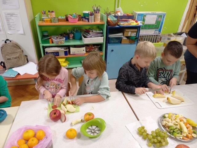 Starija “C” skupina objekta Maslačak svakodnevnim aktivnostima utječe na razvoj zdravih navika kod djece koje se odnose na prehranu, higijenu, zdravlje i sigurnost. Tim povodom obilježili su Svjetski dan jabuka i u suradnji s majkom Mandić ispekli štrudlu od jabuka, a s majkom Mikić izrađivali su voćnu salatu i voćne ražnjiće. Kroz ovakve životno praktične i radne aktivnosti djeca grade osjećaj vlastite vrijednosti, razvijaju samopouzdanje i samostalnost.