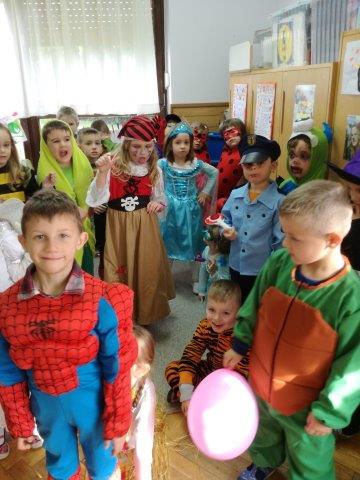 Fašnički ples 6.3.2019. U svim objektima našeg vrtića održan je "Ples pod maskama". Djeca vrtićkih skupina sa svojim su sE odgojiteljicama okupila u dvorani te tamo provela vrijeme družeći se, radujući, plešući i pjevajući razne vesele pjesmice.. Kostimirani u vile, princeze, Spidermane, Supermane, klaunove, kauboje, Indijance, Else, Hulkove, Sirene i druge vesele maske, djeca su ispratila fašnik te se počastila slatkišima i krafnama.