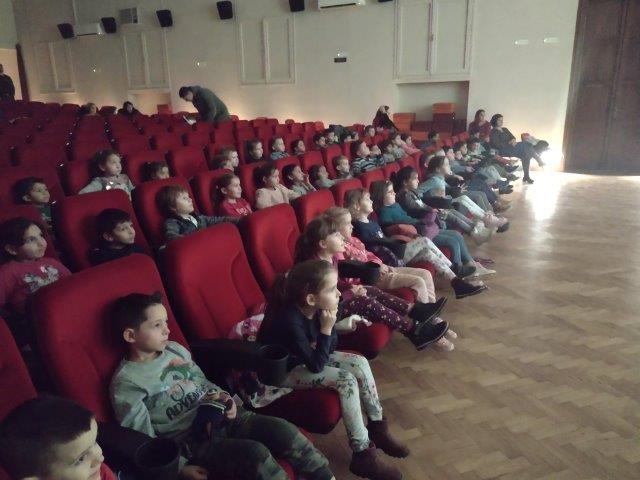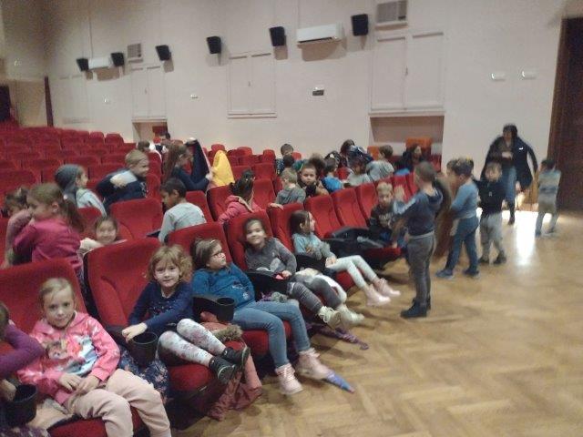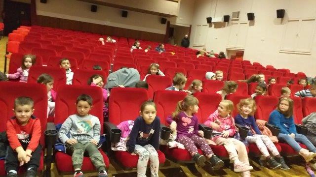 Djeca tri skupine predškole posjetila su POU Kutina gdje su u kino dvorani gledali nekoliko kratkih animiranih filmova za djecu. Animirani filmovi namijenjeni su djeci predškolske dobi. Sva djeca pozorno su gledala, a reakcije na gledanje bile su pozitivne. Smijali su se raznim zgodama i nezgodama likova, pljeskali nakon završetka svakog animiranog filma. Za sjećanje na prvi odlazak u kino dobili su diplome „Moj prvi odlazak u kino“ koje su rado podigli da se vide tijekom zajedničkog fotografiranja.