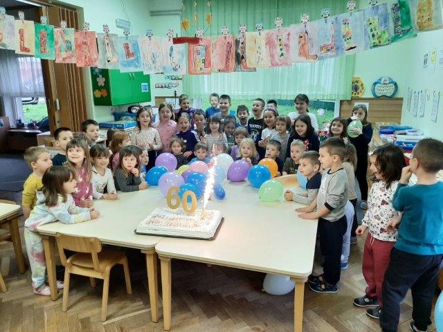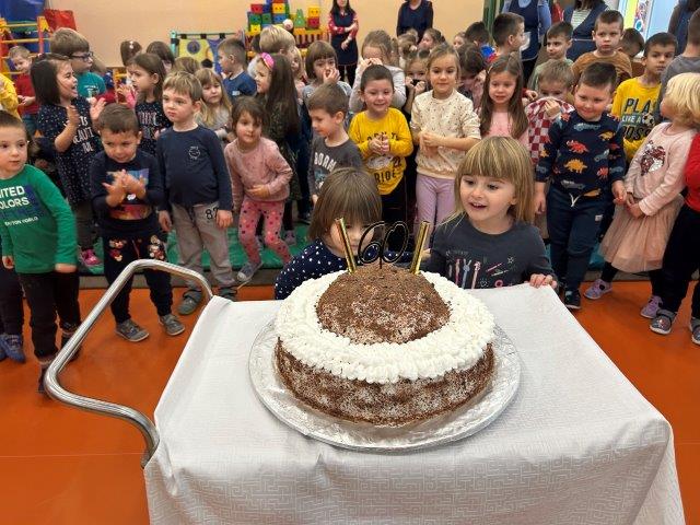 Dragi vrtiću, sretan ti rođendan!! 15.12.2023. U srijedu, 13. prosinca naš Vrtić je proslavio svoj 60. rođendan.. Djeca vrtićkih skupina, zajedno sa svojim odgojiteljicama su čestitala rođendan plešući i pjevajući..