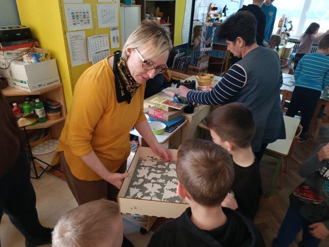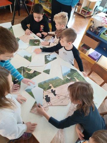 U srijedu, 20.12. našu skupinu posjetili su članovi Foto-video kluba Kutina. Djecu su upoznali sa načinom snimanja fotografija i izradom fotografija postupkom cijanotipije (stari fotografski proces izrade fotografija). "Čarolija" nastanka fotografija je zaokupila pažnju sve djece pa ni 5-minutno iščekivanje fotografija iz "čarobne kutije" nije bilo predugo! Djeca su se imala priliku okušati i u fotografiranju drugih, a za kraj članovi FVK Kutina su nam donijeli i veliku slagaricu na temu Konjskog polja koju je zaista bio izazov složiti, no, uspjeli smo! Hvala članovima FVK Kutina (osmašima OŠ Vladimira Vidrića) i voditeljici Marijani Kapetanović, majstorici fotografkinju na dolasku i druženju.