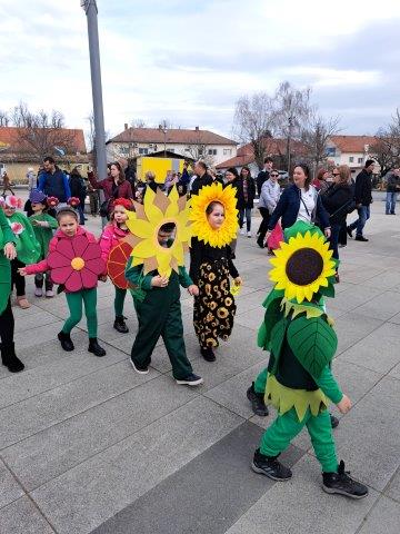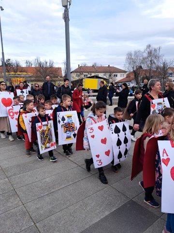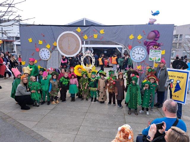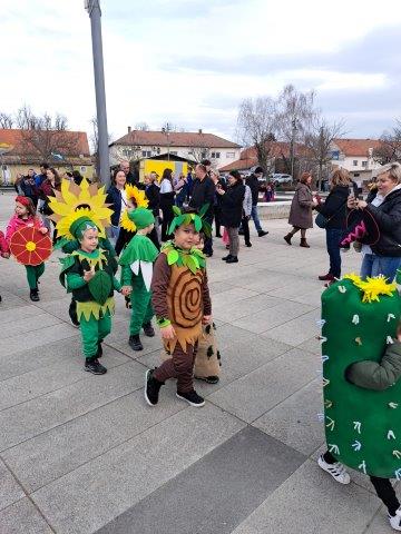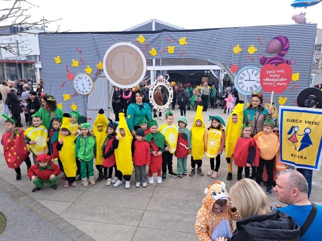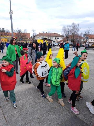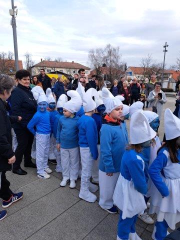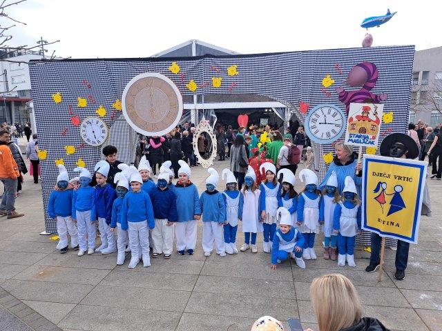 Fašnik u Kutini 13.2.2024. Djeca starijih skupina Nevena i Maslačka u subotu su sudjelovala u fašničkoj povoci našim gradom. Predstavili su se s maskama štrumpfova, igraćih karata, voća i povrća te biljaka.