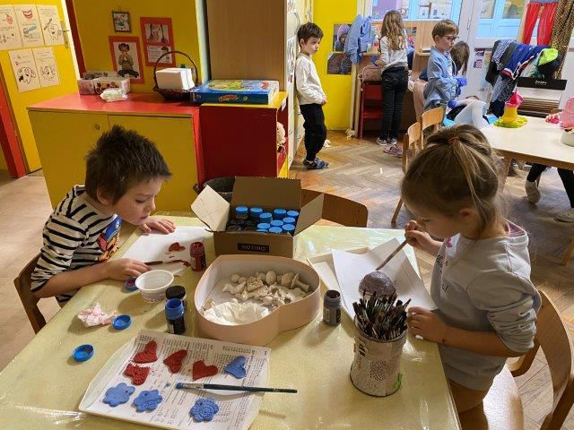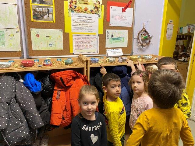 Suradnja sa gđom Jasnom Borovnjak dobila je svoj nastavak u vidu posjeta naše skupine, starije A, udruzi „Terakota“ iz Kutine. Djeca su doživjela pravo umjetničko iskustvo i putovanje kroz maštu. Pratila su sve procese glinom. Prvo su oblikovali, sušili, vadili gotove keramičke ukrase iz peći i na kraju dali završni sjaj bojom. Ove posebne i autentične ukrase djeca su izložila u prostoru vrtića.