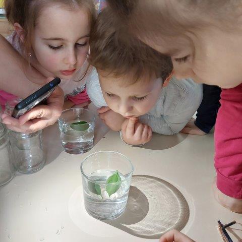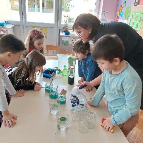 U skupini nas je posjetila Donatova mama, gđa Barbara Tonković, po zanimanju mag. ing. biljnih znanosti. Djeci je na vrlo zanimljiv i poučan način prezentirala svoje zanimanje. U sklopu našeg projekta „Što je biljci potrebno za rast?“ radila je nekoliko pokusa što je kod djece izazvalo veliki interes. Pokusi su izazvali dječju znatiželju te su postavljali zanimljiva pitanja. Djeca su imala priliku vidjeti kako list diše, kako korijen upija vodu te kako izgledaju korijen i list pod mikroskopom. Rezultate eksperimenta nastavit ćemo pratiti u našem kutiću prirode. U nastavku možete pročitati neke od dječjih izjava: