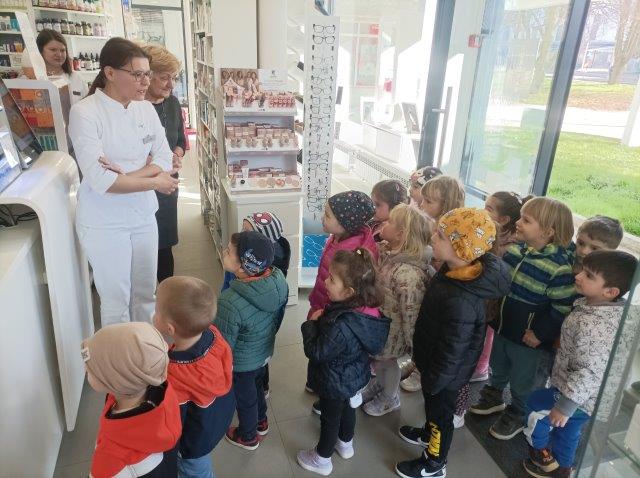 Mlađa A skupina Bubamare posjetila je Petrovu mamu Lidiju na radnom mjestu u ljekarni Barišić. Mama nas je upoznala sa radom ljekarne i što sve u njoj možemo pronaći i kupiti. Vidjeli smo i proces izdavanja lijekova te kako se rade sirupi i kreme. Počastila nas je sokovima i grickalicama, a mi smo im otpjevali nama poznate pjesmice. Za kraj nam je podijelila edukativne slikovnice i poklon paketiće.