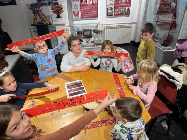 U utorak, 12.3. starija D skupina sudjelovala je na radionici izrade parti u Muzeju Moslavine. U suradnji sa kustosicom, gđom Silvijom Kantolić naša skupina okušala se u izradi tradicionalnog djevojačkog pokrivala za glavu, oglavlja, koje je označavalo spremnost djevojke za udaju. Vrijedne ruke djevojčica i dječaka starije D skupine vrlo su pažljivo i ustrajno izrađivala svoje parte. Zahvaljujemo se na suradnji gđi Silviji i Muzeju Moslavine!
