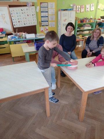 U sklopu aktivnosti na temu “Zubi” stariju C skupinu objekta Maslačak posjetila je stomatologinja dr. Ksenija Radičanin Neumuller te razgovarala s djecom o higijeni zubi i pravilnom pranju zubi. Provela je fluoridaciju četkanjem - premazivanjem. Nastavak suradnje odvio se posjetom njenoj stomatološkoj ordinaciji gdje su djeca imala prilike vidjeti što sve stomatološka ordinacija sadrži. Svoje doživljaje nakon ovih susreta djeca su likovno izrazila raznim tehnikama.