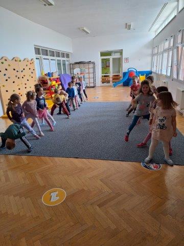 Srednja D skupina pokazala je veliki interes za igrama natjecateljskog tipa, pogotovo onima u kojima su podijeljeni u nekoliko timova unutar kojeg moraju surađivati, dogovarati poteze i donositi odluke. Ovakvi izazovni zadaci pred djecu stavljaju mogućnost i test kako se nositi s porazom i reagirati na socijalno prihvatljiv način, kako prihvatiti odgovornost sebe kao dijela tima te kako ne osuđivati jedni druge.