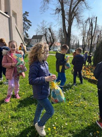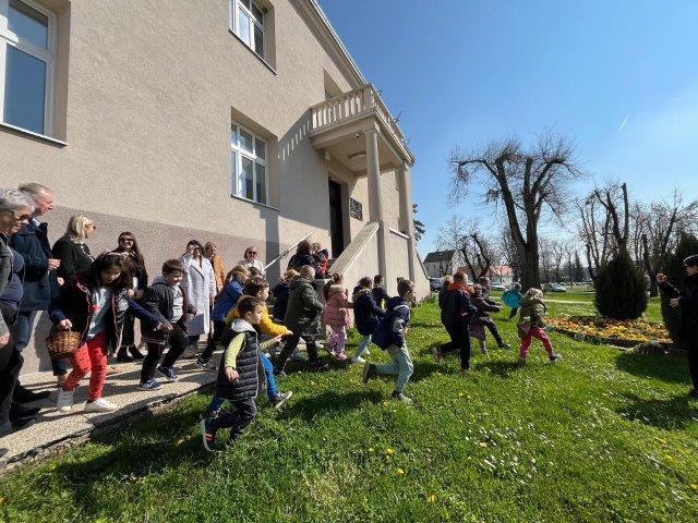Starija odgojna skupina objekta Neven danas je posjetila Grad Kutinu i pri tom sudjelovala u potrazi za uskrsnim poklon paketima. Njihovoj potrazi pridružili su se i gradonačelnik našeg grada, gosp. Zlatko Babić, zamjenica gradonačelnika, gđa. Ivana Grdić te pomoćnica pročelnice gđa. Kornelija Marošević. Poželjeli smo im sretan i blagoslovljen Uskrs te zahvalili na slatkim poklon paketima.