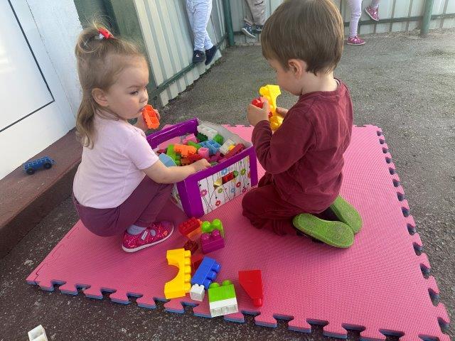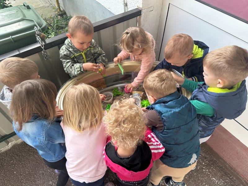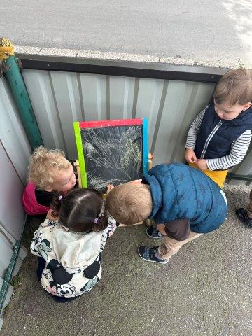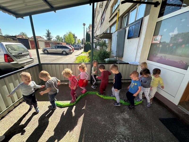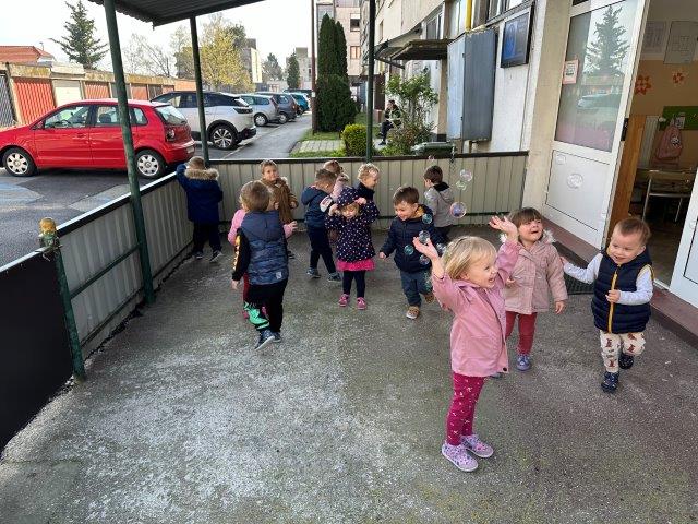 Djeca II. jaslica "Potočnice" uživaju u igrama na terasi te rado provode vrijeme na zraku. Boravak na terasi dio je naših aktivnosti koje svakodnevno provodimo. Omiljena aktivnost im je trčanje s jednog kraja terase na drugi te na taj način zadovoljavaju potrebu za kretanjem. Djeca rado istražuju prostor te promatraju prijevozna sredstva koja svakodnevno prolaze pokraj našeg vrtića. Posebno ih veseli hvatanje balona sapunice te šaranje kredom. Pažnju im privuku i mravi i razne bube koje pronađu i promatraju. Vrijeme za boravak na zraku brzo prođe u gradnji kockicama te plesu i igri s kretanjem "Ringe raja". Naše aktivnosti na terasi proširivati ćemo i produljivati vrijeme boravka na zraku kako bi pozitivno utjecali na razvoj djece.