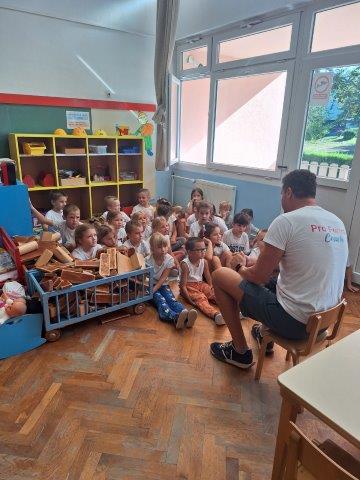 Povodom Hrvatskog olimpijskog dana pozvali smo na igru Eminog i Tinovog tatu, gosp. Sašu Samboleka. Iskoristili smo lijepo vrijeme na igralištu našeg vrtića. Gospodin Sambolek je za djecu pripremio razne vježbe, poligon te pokretne i natjecateljske igre. Posjet je bio vrlo uspješan, a zastupljenost djece u aktivnosti visoka.