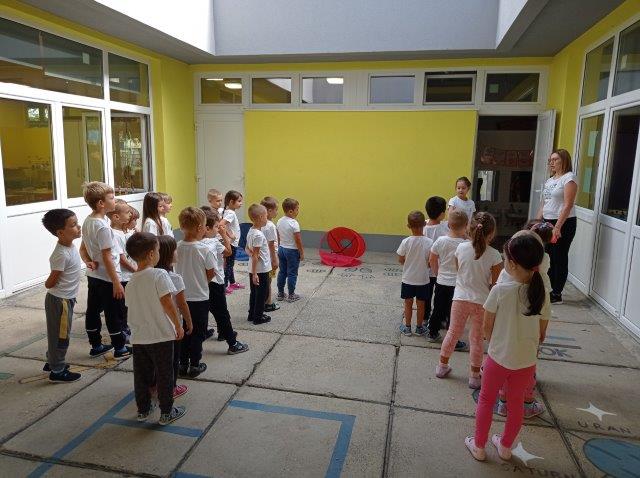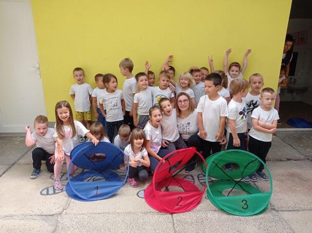 S trenerom programa "Vrtko"- rukomet u vrtićima, gosp. Brunom Mikuličićem provedene su tjelesne aktivnosti i održane male sportske aktivnosti povodom obilježavanja HOD-a. Djeca su se natjecala u četiri discipline: nošenje loptice u žlici, skakanje u vrećama, nošenje vode u čašicama do cilja i potezanje užeta.