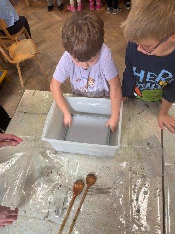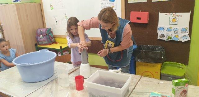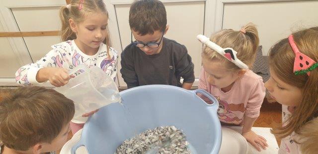 Gospođa Sunčica Ljevar, Emilina mama, pomogla nam je u izradi papira. Miksanjem smo dobili papirnu kašu.