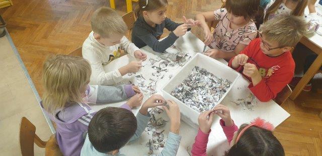 Ručno smo usitnili stare novine koje smo sakupljali u spremniku za papir u našem eko kutiću