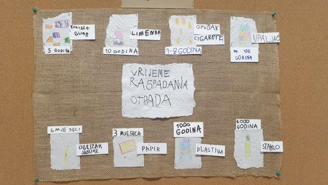 Nakon jednog dana sušenja, reciklirani papir upotrijebili smo za izradu plakata „Vrijeme raspadanja otpada.“