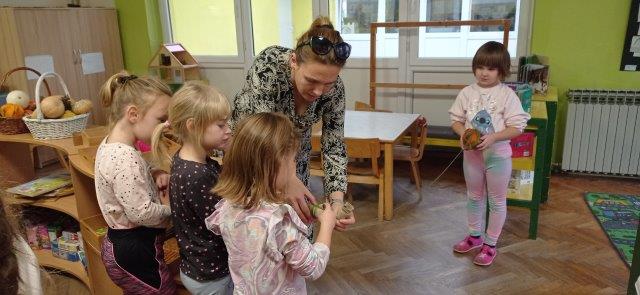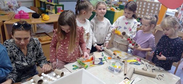 U našoj skupini je boravila gospođa Horvat, Vinkina mama, s kojom smo započeli izradu igračaka od otpadnih materijala. Upotrijebili smo otpad iz naših spremnika u skupini te prikupljen kod kuće. Djeca su se prepustila svojoj mašti. Gospođa Horvat je pokazala i način izrade pufleka od ostataka vune. Zahvalili smo joj na suradnji i nastaviti ćemo proces recikliranja kako bismo dovršili sve igračke.