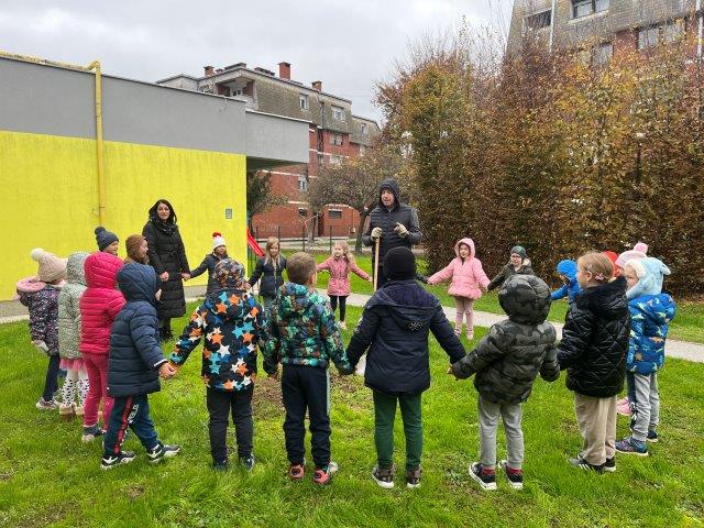Djeca starije C skupine, zasadila su sadnicu lipe na zelenoj površini u dvorištu Maslačka. Suradnja s domarom, interaktivno sudjelovanje djece uz pjesmu o „lipi“ pridonijelo je novom znanju i doživljajima.