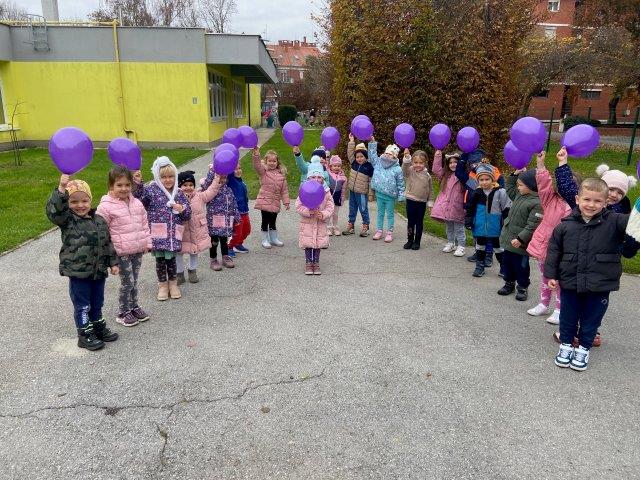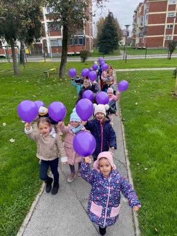 Djeca srednje B skupine objekta Maslačak obilježila su Dan palčića. Gđa Slegovac je donijela ljubičaste balone koji su simbol obilježavanja dana, a djeca su ih iskoristila za igru u skupini i na igralištu.