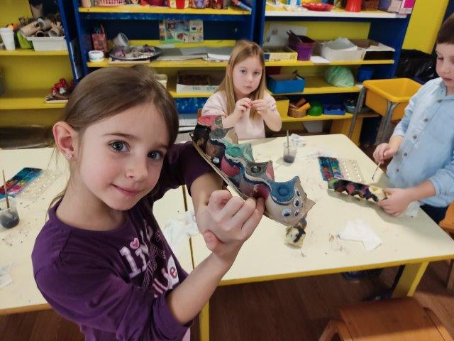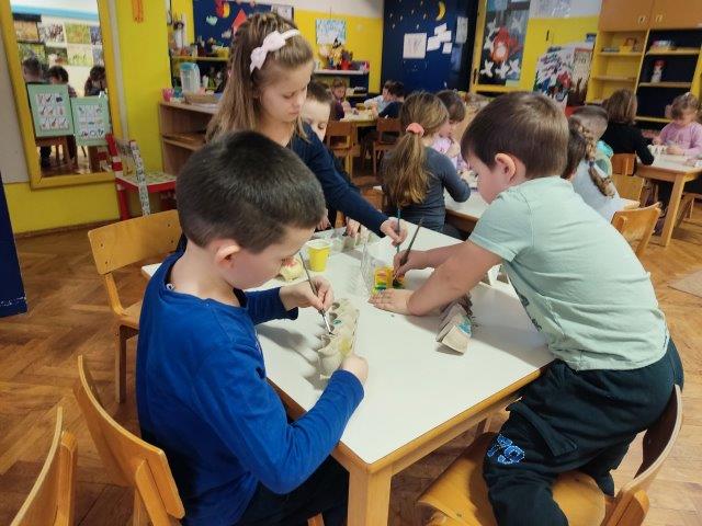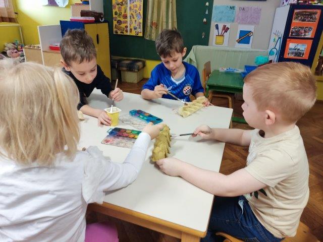 Tako je i u našoj skupini boravila Petrina mama koja je za djecu priredila aktivnosti na temu "Gusjenica". Djeci je pročitala slikovnicu "Gusjenica Tonka". Sadržaj priče govori o gusjenici koja je odlučila ostvariti svoj san, prevladati strah i popesti se na vrh planine. Djeci se veoma svidjela slikovnica, a po završetku čitanja Petrina mama je priredila i likovnu aktivnost. Djeca su od kartonkih kutija za jaja izrađivala gusjenice. Prvo su kartonske kutije oslikali akvarelom, a kad su se kutije osušile gudjenice su ukrasili tako što su im dodali oči i ticala. Aktivnost je bila veoma uspješna, a interes i zadovoljstvo djece veliko.